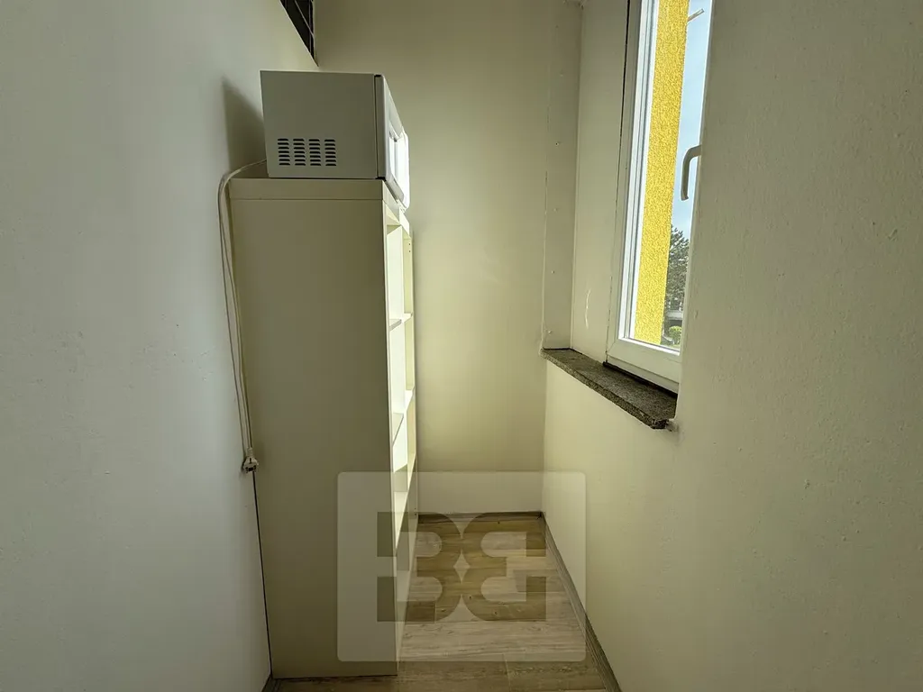 Byt nabízí praktické dispoziční řešení – samostatnou ložnici s přístupem na balkon orientovaný na západ, druhý pokoj s okny na východ a prostornou kuchyni s přístupem na druhý balkon. Součástí bytu je také šatna v chodbě a další menší komora, která poskytuje dostatek úložného prostoru. Koupelna i toaleta prošly rekonstrukcí, přičemž toaleta je samostatná. V koupelně se nachází sprchový kout.