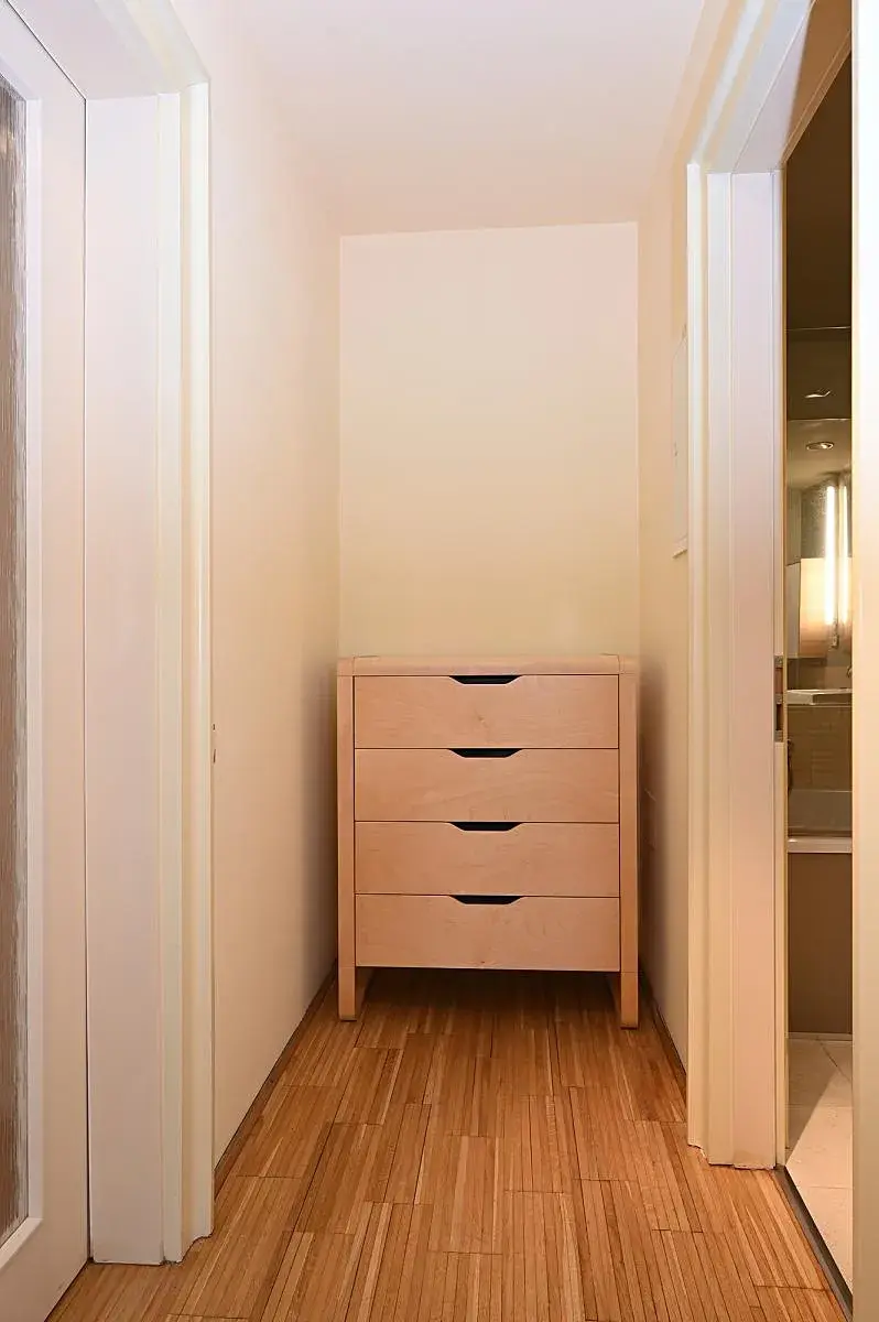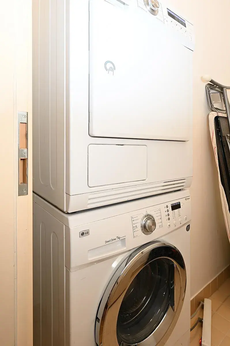 Byt je kompletně zařízen nábytkem. V komoře je umístěna pračka a odděleně sušička. V koupelně je vana, WC zvlášť.