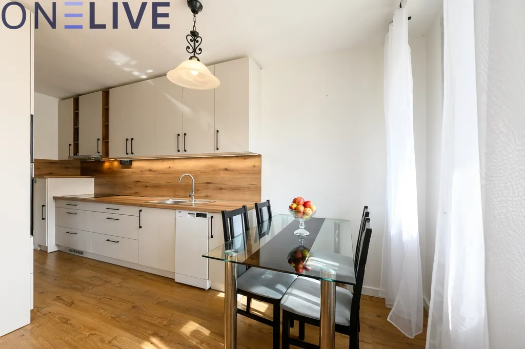 Byt disponuje praktickým a dobře řešeným dispozičním uspořádáním. Dominantou je prostorný obývací pokoj propojený s kuchyňským koutem a jídelní částí, který je díky velkým oknům příjemně prosvětlený po celý den. Kuchyňský kout prošel nedávnou rekonstrukcí a nabízí moderní kuchyňskou linku s dostatkem úložného i pracovního prostoru.