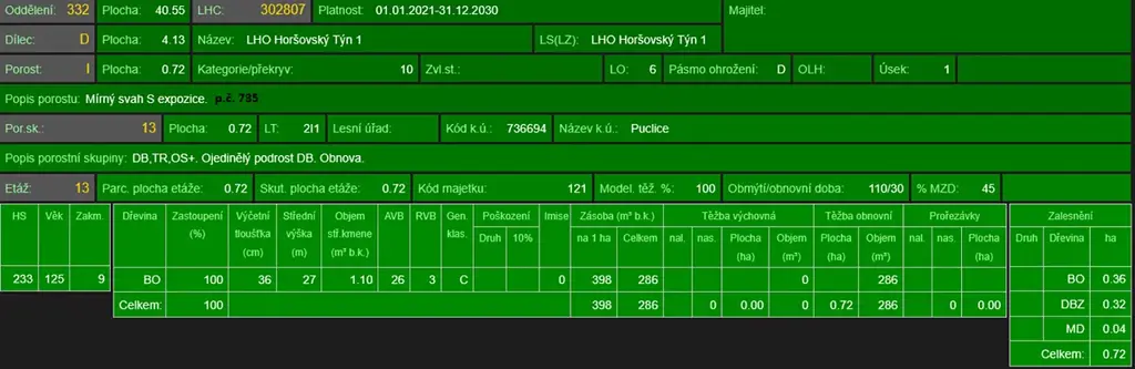 - p.č. 690 vedená jako lesní pozemek o celkové výměře 5 444 m2, z toho vlastníme podíl 2/3 tedy 3 659 m2 (stáří lesa 110 let - zastoupení dřevin borovice, modřín, dub, stáří lesa 90 let - zastoupení dřevin borovice, dub, stáří lesa 60 let - zastoupení dřevin borovice),