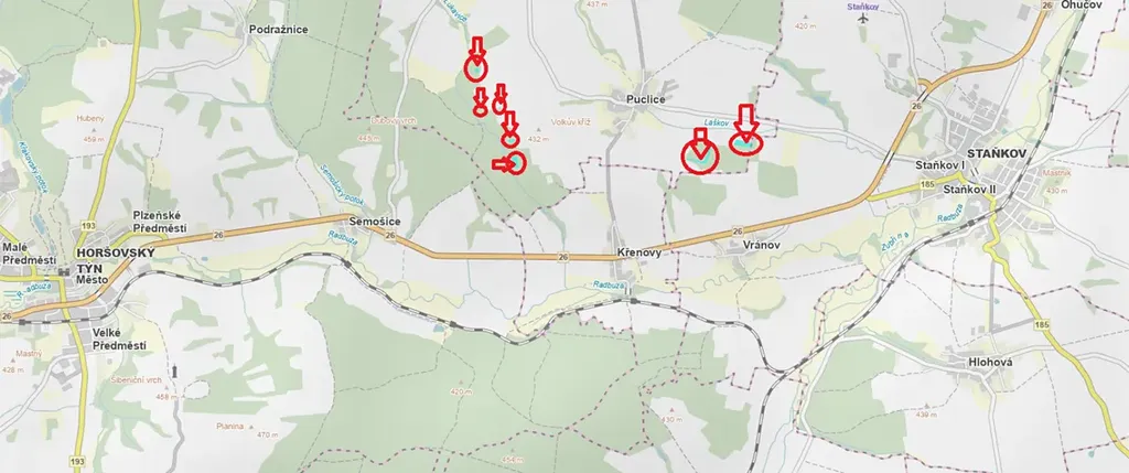 Pozemky jsou aktuálně bez těžby (vhodné k těžbě) - zaměřeny geodetickými body.