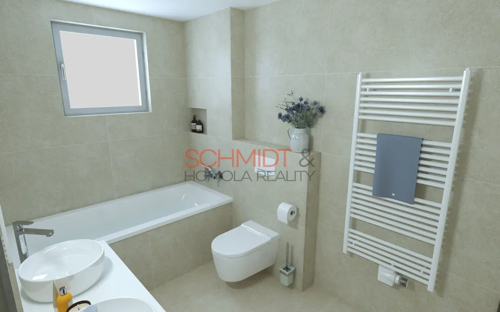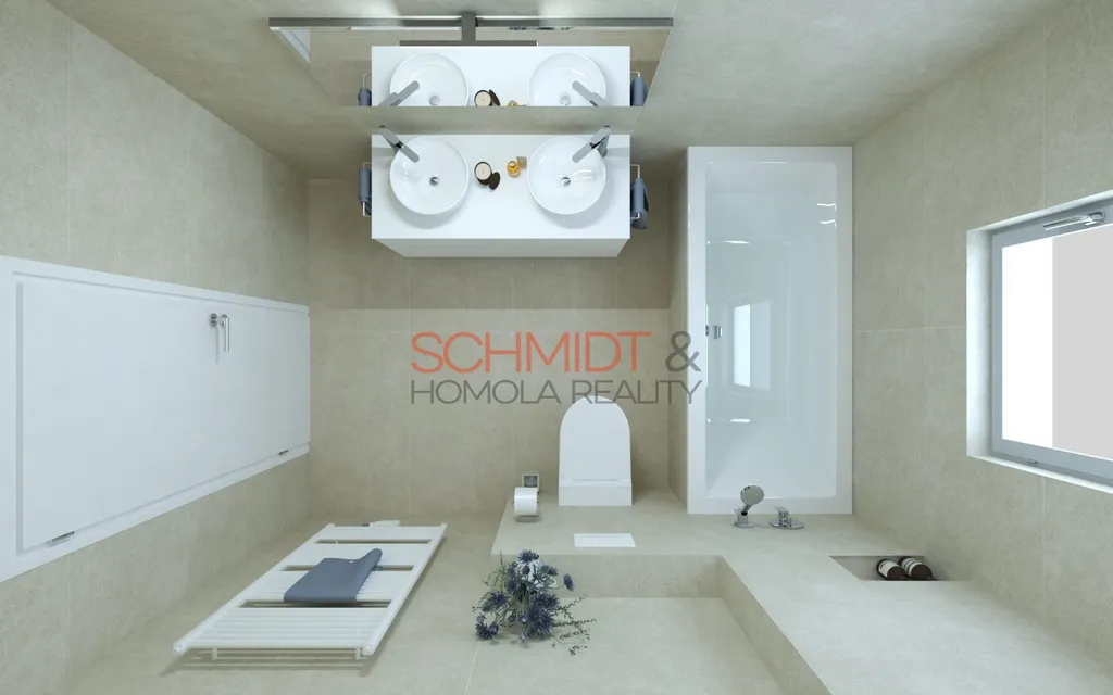 Jak na stavbě samotné, tak také v interiéru, všude jsou využívány kvalitní materiály (sanitární výrobky GROHE, Geberit...). Součástí domu jsou hotové vinylové podlahy, dveře a zařizovací předměty v koupelnách a wc.