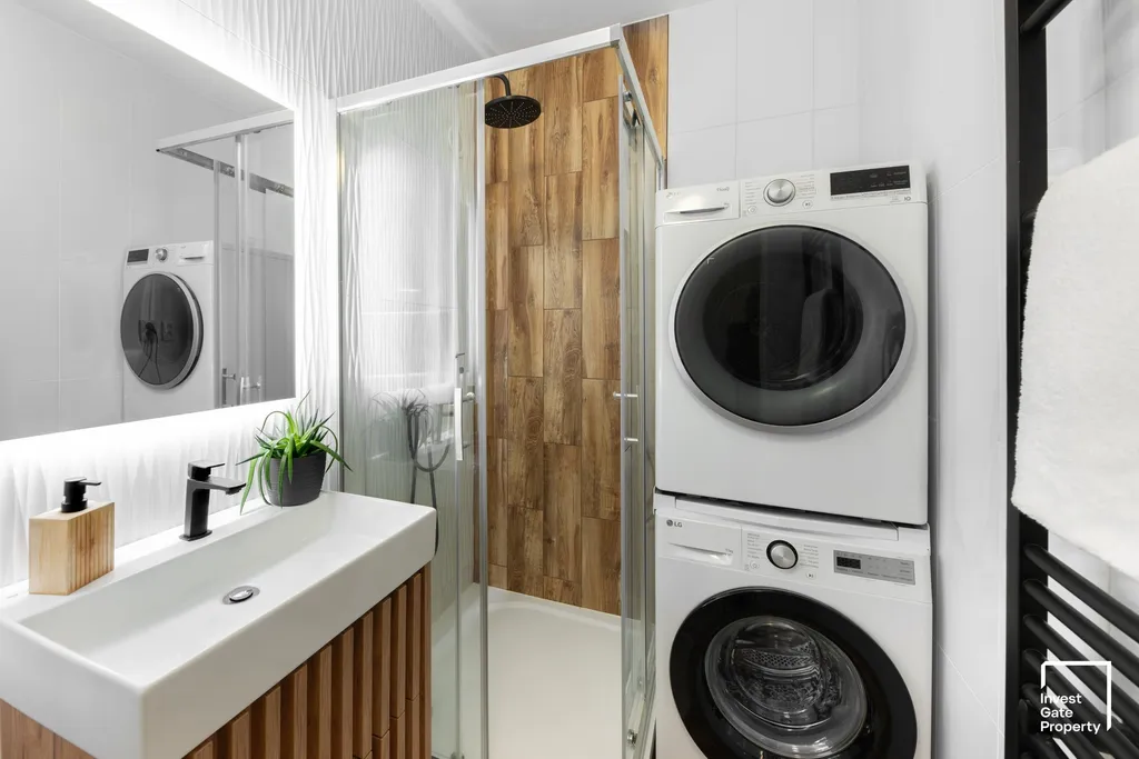 Hlavní předností této nemovitosti je kvalitně provedená rekonstrukce bytového jádra. To bylo kompletně vybudováno jako zděné a navrženo s důrazem na maximální funkčnost i komfort. Koupelna disponuje nadstandardně velkým sprchovým koutem a dostatkem prostoru pro pračku a sušičku (součást prodeje). Samostatná toaleta je řešena velmi prakticky, včetně přístupu k rozvodům, což výrazně usnadňuje případnou údržbu.