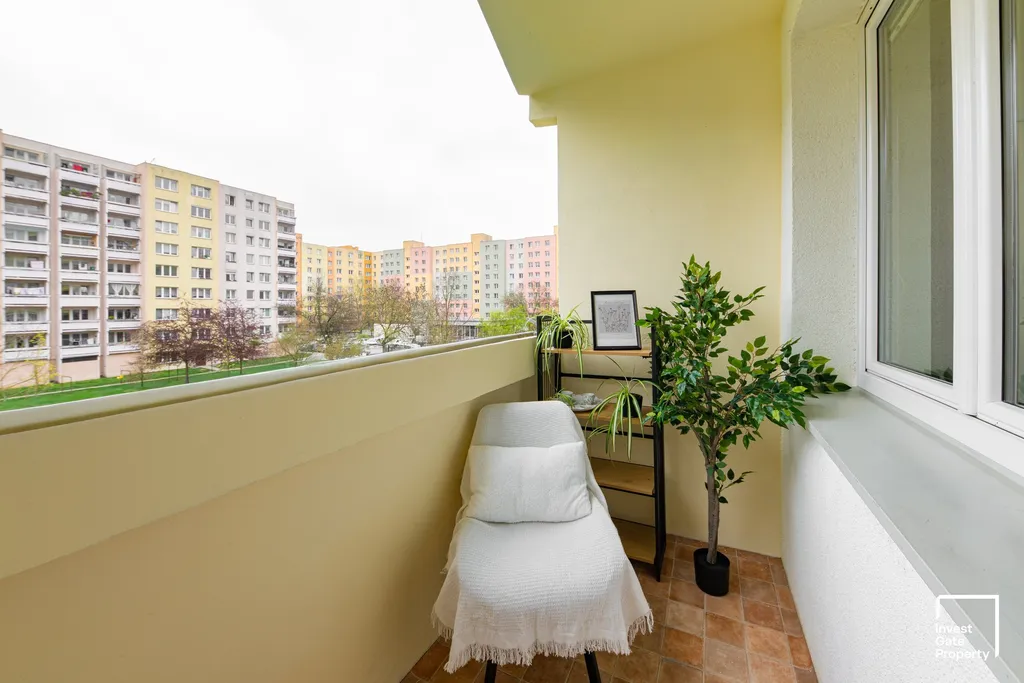 Dispozičně byt nabízí vstupní halu s vestavěnými skříněmi, kuchyni s jídelní částí, obývací pokoj se vstupem na lodžii, ložnici a další pokoj. Právě jeden z pokojů poskytuje zajímavou možnost úpravy – jeho rozdělením lze snadno získat dispozici 4+kk, což ocení zejména rodiny nebo investoři.