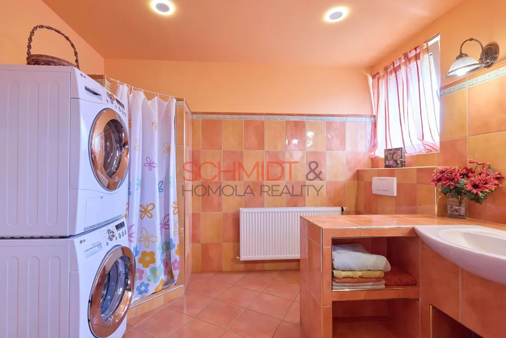 Pod částí domu je suterén, ze kterého je přístup do malého kvelbeného sklepa i do zahrady. Podzemní patro je suché a čisté.