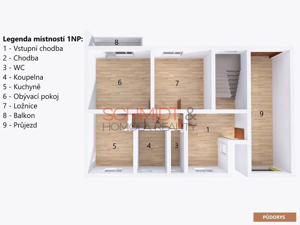 - Přízemní 2+1, dále je zde koupelna, oddělené WC, společná vstupní hala a schodiště. V obývacím pokoji je prostorný balkon s výhledem do zahrady.