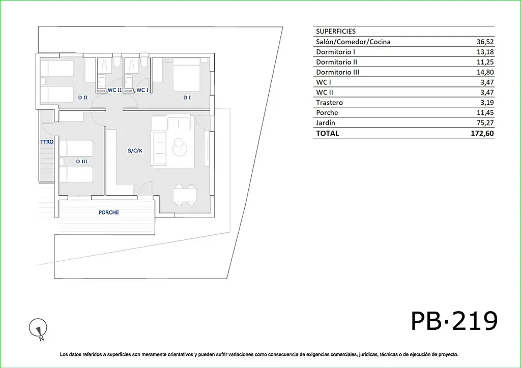 Rezidenční komplex nabízí bungalovy se 2 nebo 3 ložnicemi ve dvou variantách: