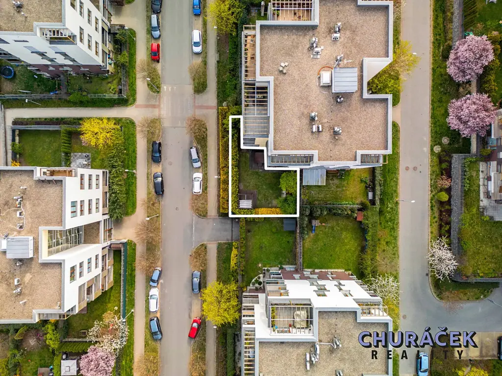 Byt má celkovou podlahovou plochu téměř 100 m² a je doplněn o soukromou předzahrádku o velikosti přibližně 200 m². Ta nabízí skutečný pocit soukromí, jelikož je situována ve vyvýšené části cca 4 metry nad okolním terénem. Zahrada je vybavena altánem, dětským domečkem, prostornou vířivkou a dále prvky zvyšujícími komfort užívání, jako je elektricky ovládaná pergola, venkovní osvětlení, stínění či sítě proti hmyzu.