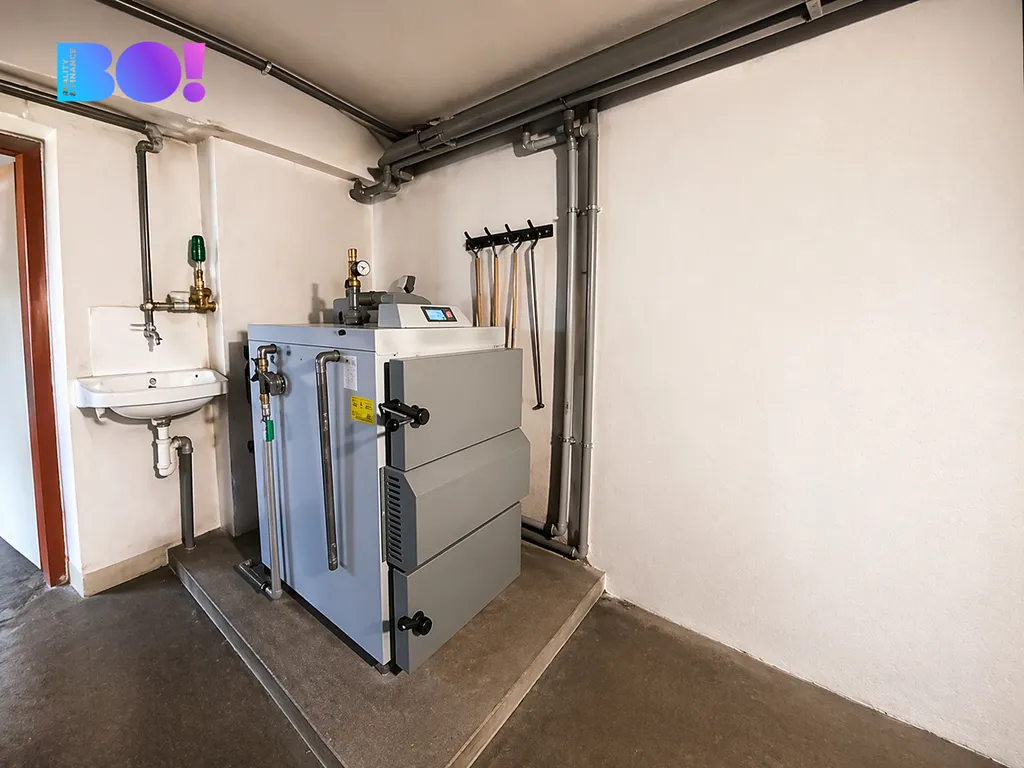 Vytápění domu je řešeno novým kotlem na tuhá paliva splňujícím aktuální normy, doplněným o akumulační nádrže. Výhodou jsou také solární panely, které zajišťují ohřev teplé vody v letních měsících, což výrazně snižuje provozní náklady.