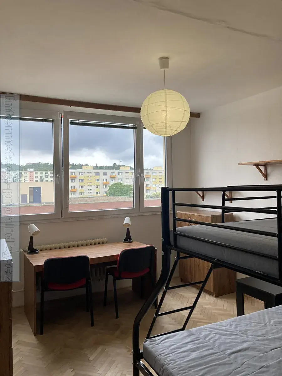 Nabízíme k pronájmu sdílený pokoj 19m2 v bytě 3+1. Byt má společný balkón, prostornou kuchyň, koupelnu se sprchou, samostatnou toaletu, šatní místnost. Cena 6500Kč, vratná kauce 10 000Kč, provize 10 000Kč