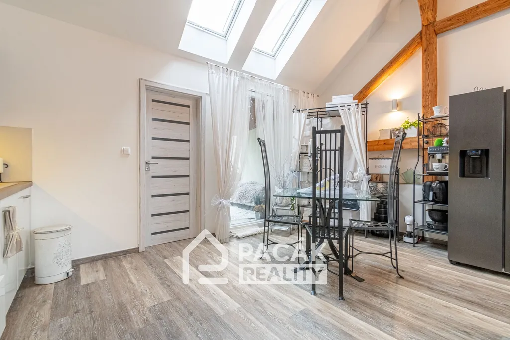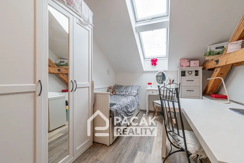Jednotka vznikla v roce 2018 půdní vestavbou – samozřejmostí je nová střecha, zateplení, nová okna (klasická i střešní), kompletní elektroinstalace, nové omítky a kvalitní vinylové podlahy.