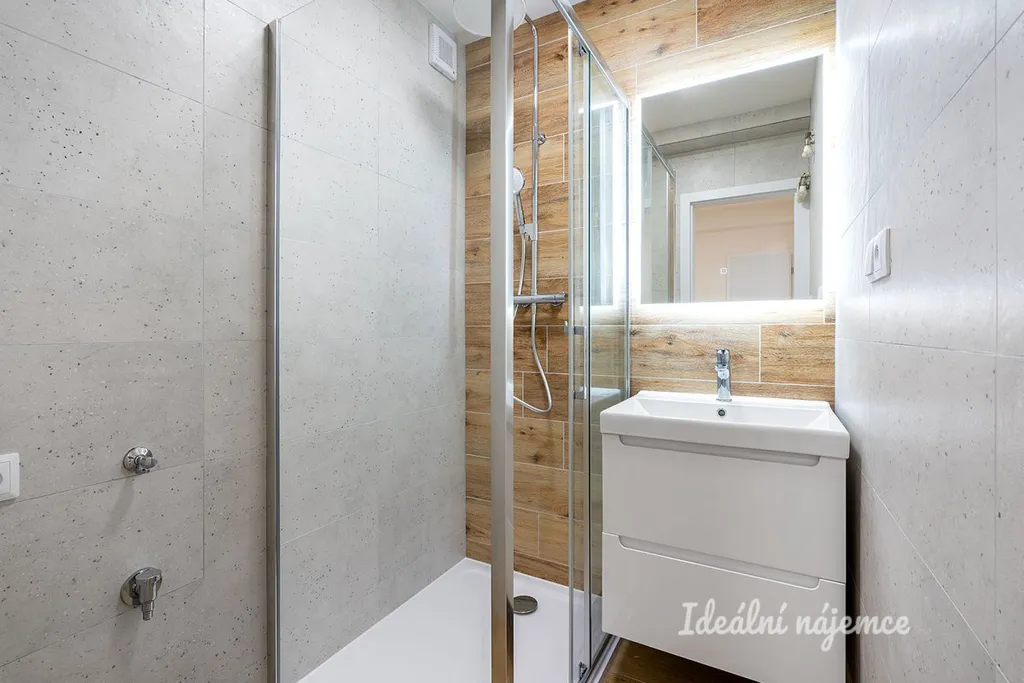 Byt se pronajímá částečně vybavený, což budoucím nájemníkům umožňuje dovybavení interiéru podle vlastních potřeb. Kuchyňská linka disponuje všemi potřebnými spotřebiči – k dispozici je lednice s mrazákem, elektrická trouba, varná deska, digestoř a myčka. Obývací pokoj je díky velkým oknům velmi vzdušný a nabízí prostor pro odpočinkovou zónu i jídelní stůl. Druhý pokoj je samostatný a ideální jako ložnice. Koupelna je řešena sprchovým koutem a umyvadlem, toaleta je oddělená.