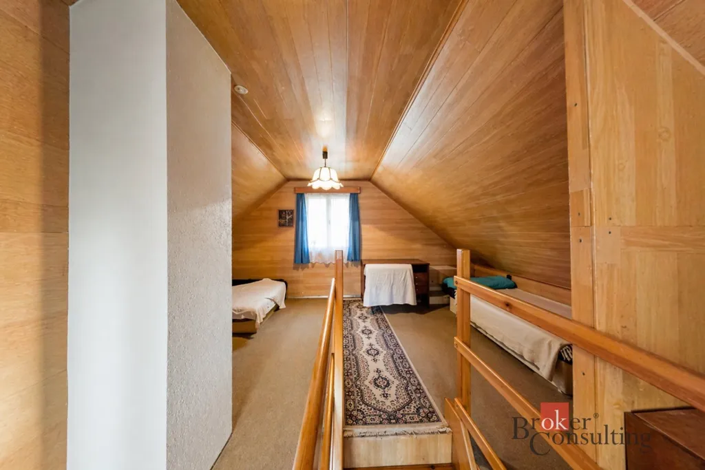 Nechte se zlákat dřevěným interiérem, praskajícími kamny a na závěr dne odpočinkem ve velké podkrovní ložnici. Značnou výhodou je koupelna se sprchovým koutem, pitná voda vedená ze studny, která je pravidelně kontrolována, venkovní udírna a prostorná kolna.