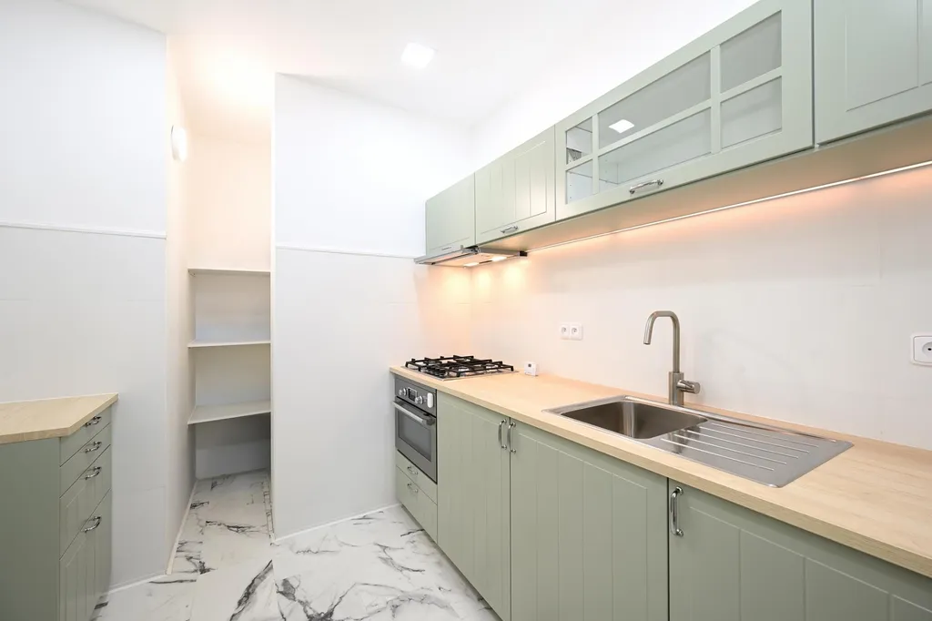 Nově kompletně zrekonstruovaný, kompletně a luxusně zařízený byt 2+1, 50m2 s balkonem a se sklepem, Praha 3, Jarov, Křivá ul.., situované ve velmi dobře udržovaném domě s novým výtahem. Možnost pronajmout garážové stání asi 5 minut od domu za 2.500,-CZK / měsíc.
