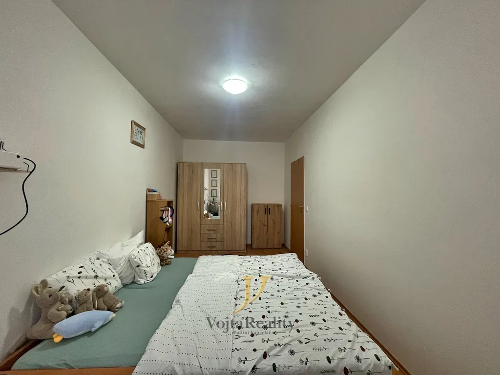 Byt je prakticky řešený. Nabízí vstupní chodbu, světlý obývací pokoj s kuchyňským koutem a přímým vstupem na lodžii, koupelnu s vanou a toaletou, technickou místnost s kotlem a přípojkou na pračku a dvě samostatné neprůchozí ložnice.