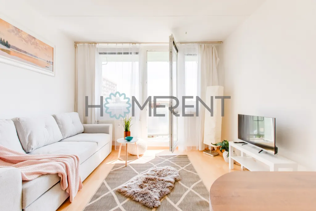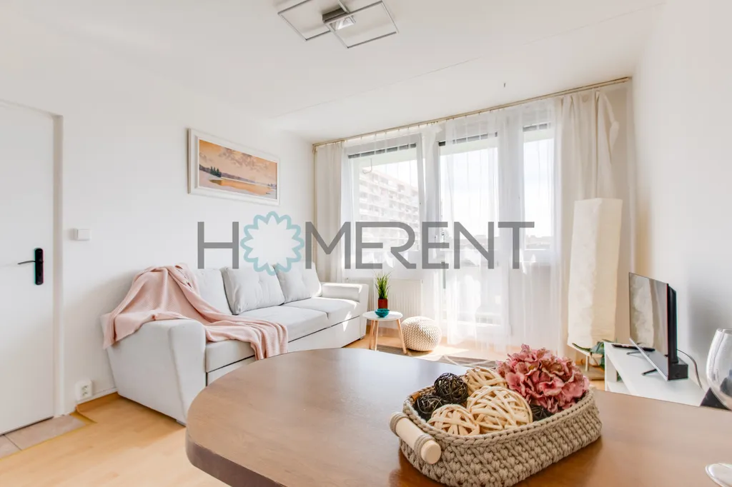Dispozice bytu nabízí praktické a pohodlné bydlení. Součástí je vstupní chodba, koupelna se sprchovým koutem, pračkou a částečně oddělenou toaletou, dále ložnice s velkou vestavěnou skříní a dostatkem úložného prostoru. Hlavní obytnou část tvoří obývací pokoj propojený s vybaveným kuchyňským koutem. Kuchyňská linka je vybavena lednicí, myčkou a sporákem. V bytě je dále k dispozici postel o šířce 160 cm a rozkládací gauč. Z hlavní obytné místnosti je přímý vstup na balkon, který nabízí příjemné místo pro ranní kávu, odpočinek po práci nebo klidné posezení na čerstvém vzduchu.