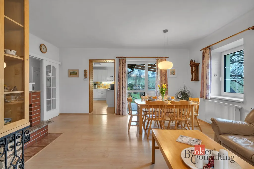 Dispozičně je dům řešen jako 5+kk + obyvatelný půdní prostor. Je ideální pro rodinu s dětmi a obrovskou výhodou jsou jeho nízké provozní náklady. Nemovitost nabízí dostatečný klid s dobrou dopravní dostupností a v blízkosti přírody.