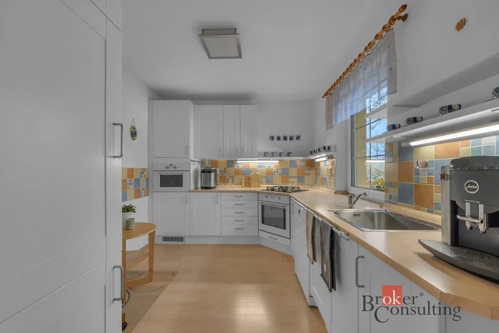 V přízemí domu naleznete prostorný a světlý obývací pokoj s výstupem na venkovní terasu, která Vám poskytne krásný výhled do zahrady. Součástí přízemí je moderní kuchyňský kout a jídelna. Kuchyňská linka je vybavena dvěma troubami a plynovým sporákem na PB, s keramickou deskou a myčkou. Dále zde najdete ložnici s vestavěnou skříní a koupelnu s vanou a samostatným WC.