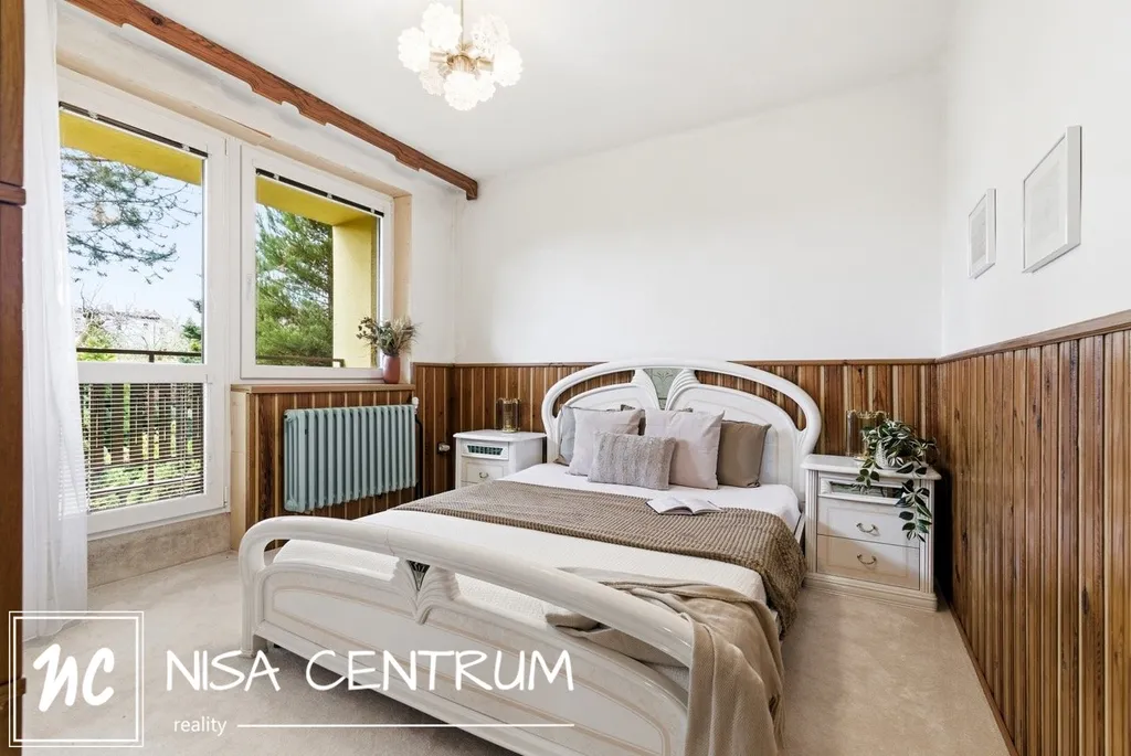 V hlavní obytné části se nachází vstupní chodba a světlý obývací pokoj s krbem, který je funkčně propojen s kuchyní. Soukromou zónu tvoří tři ložnice, z nichž jedna disponuje vstupem na balkon, a koupelna vybavená vanou. Velkou výhodou je, že toaleta je umístěna zcela samostatně v oddělené místnosti, což zajišťuje vyšší komfort i soukromí.