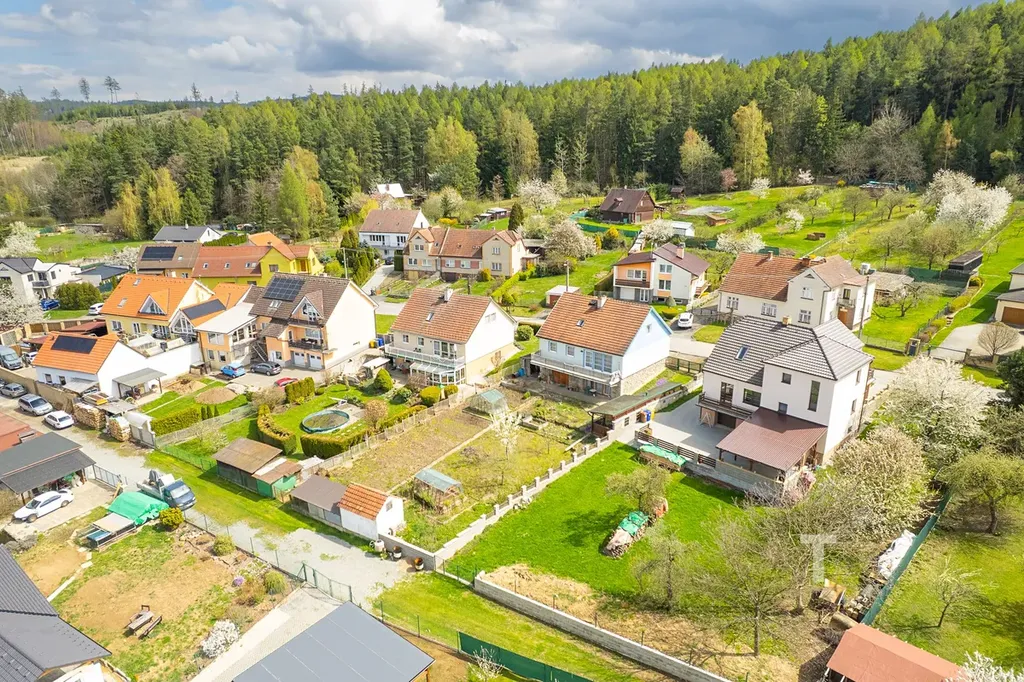 Celková plocha pozemku činí 822 m2, je oplocený, mírně svažitý. Na pozemku se také nachází “kurník” s oploceným výběhem pro slepice (6,5 m2), 2 skleníky, přístřešek na nářadí (15 m2) hned vedle domu a venkovní kryté posezení (13 m2). Na pozemku jsou ovocné stromy. Velkou výhodou je přístup na pozemek ze dvou stran. Přímo z ulice je možný vjezd a přístup je také ve spodní části u obecní cesty.