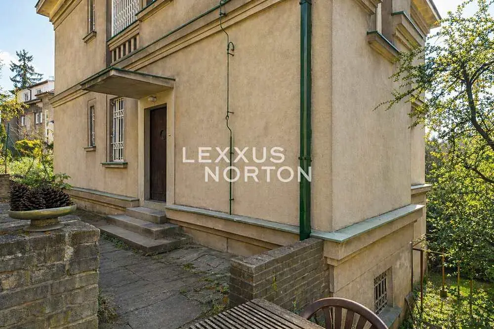 Historická vila z předválečné doby zasazená ve svahu, dominantou bytů je nádherný výhled na Prahu. V domě jsou 3 byty, v suterénu je byt s dispozicí 2+1 o velikosti 56m, vytápění bytu pomocí WAW, na tomto patře je i prádelna a sklepní kóje k bytům. V 1.NP je byt 4+1 o velikosti 88 m2 s lodžií 1m2, vytápění el. přímotopy, ve 2.NP je byt 3+1 o velikosti cca 88 m2, vytápění plynovým kotlem. K dispozici je pak i půda pro případnou další realizaci bytových jednotek. K parkování slouží dvě zastřešená místa na pozemku a zděná garáž. Dům je určený k celkové rekonstrukci, kdy mohou s použitím půdy vzniknout 3 byty a ateliér nebo 3 byty s horním mezonetem nebo k demolici a výstavbě nového bytového domu. Lokalita je dle Územního plánu OB (čistě obytné), jedná se o tzv. stabilizované území, nejsou zde definovány další regulativy typu zastavěné plocha, podlažnost apod. Nový development se řídí charakterem okolní zástavby. Na pozemku je vzrostlá a udržovaná zeleň.