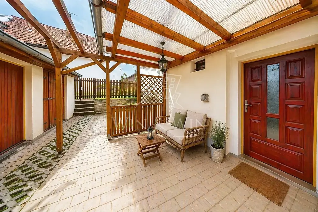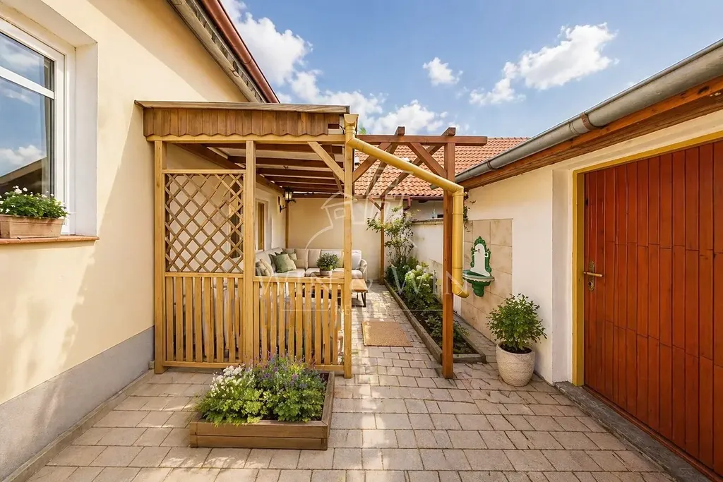 Velkou výhodou je řešení venkovního prostoru. Před domem se nachází menší dvorek, ideální pro rychlé posezení nebo praktické využití. Hlavní soukromí ale nabízí druhý dvorek za domem, který je klidnější, více oddělený od okolí a poskytuje příjemné zázemí pro relaxaci, posezení s rodinou nebo grilování. Díky menším dvorkům se navíc nemusíte starat o náročnou údržbu zahrady a zbývá vám tak mnohem více času na turistiku nebo cyklistické výlety, pro které je tato lokalita naprosto ideální.