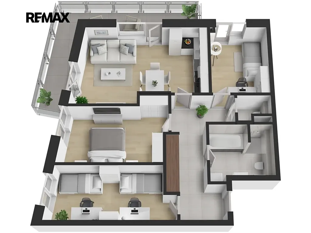 Dominantou bytu je velký balkon o rozloze téměř 17 m², který poskytuje krásný výhled do okolí a dostatek prostoru pro relaxaci i posezení s rodinou či přáteli.