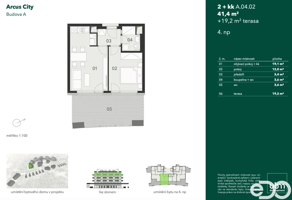 Nabízíme Vám k dlouhodobému pronájmu exkluzivní byt 2+kk 66 m² s terasou a venkovním parkovacím stáním v ulici Hasilova v novém projektu Arcus City na Praze 13.