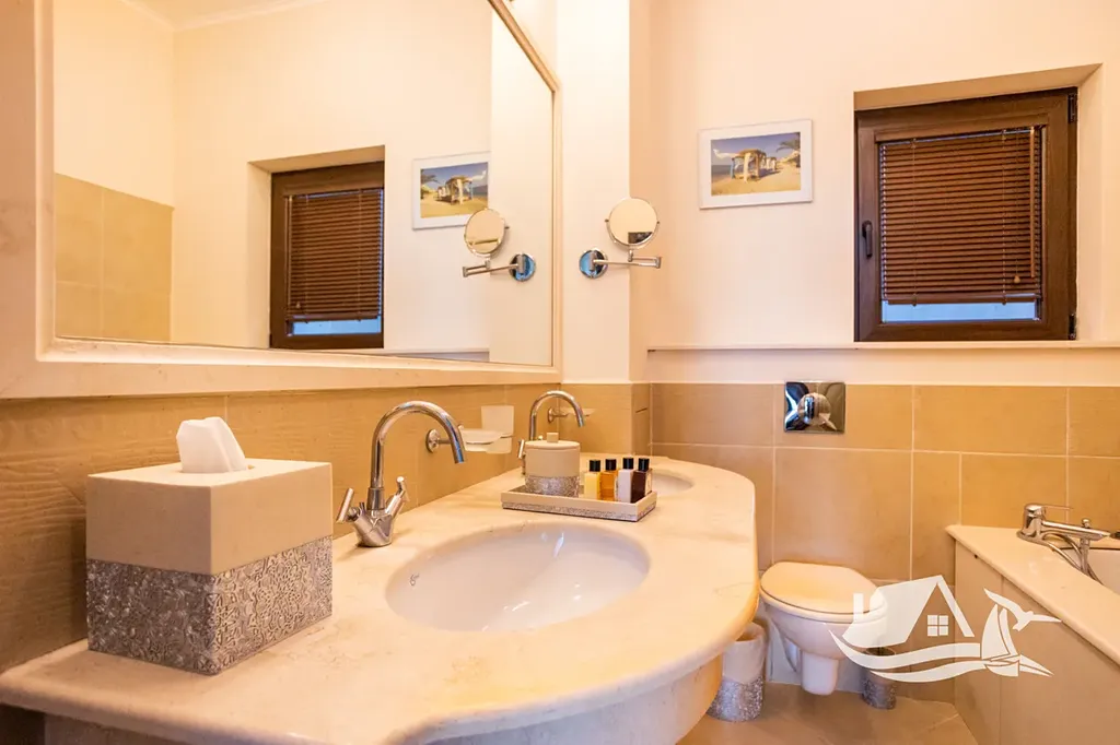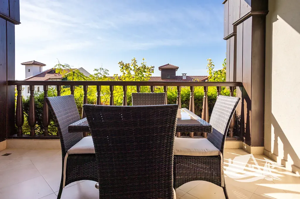 Nabízený dvoupokojový apartmán se nachází v 1. patře budovy Marina Village, blok 1, v části resortu, která je dlouhodobě velmi žádaná pro krátkodobý i hotelový pronájem. Dispozice je praktická a osvědčená pro vlastní užívání i investici. Obývací pokoj je doplněn samostatnou toaletou pro hosty, ložnice má vlastní koupelnu s toaletou a z terasy se otevírá příjemný výhled do areálu resortu. Přímý výhled na moře není, což se pozitivně odráží v ceně, zároveň však apartmán nabízí klidnější polohu a snadnou dostupnost všech služeb.