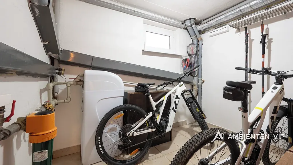 Ambienten vip vám exkluzivně nabízí prodej samostatně stojícího rodinného domu 4+kk s podsklepením pod celým domem. Je v dobrém technickém stavu o ZP 93 m2, UP 160 m2, CP pozemku 852 m2. Nemovitost je z roku 1991 a je ve velmi dobrém technickém stavu. Nemovitost je ihned k dispozici k nastěhování a je možné ji odkoupit vč. kompletního vybavení v domě. Součástí prodeje je i vířivka. Tepelné čerpadlo vytápí celý dům a zajišťuje i ohřev vody do zásobníku. V domě je bateriové úložiště 15 Kwh. Nemovitost je cihlová, zateplena minerální vatou 12 cm, střecha je zateplena 24 cm vaty + polystyrénem. Střešní krovy jsou dřevěné. Střešní krytina je betonová taška. Na střeše jsou solární panely 12 ks. Dalším zdrojem vytápění je krb umístěný v obývacím pokoji s litinovou krbovou vložkou. V domě jsou radiátory a v koupelnách otopné žebříky. Nemovitost je napojena na veřejný vodovod. Studna na pozemku není. Pozemek kolem celého domu je kompletně oplocený. Pakování vozů je možné v garáži dva vozy za sebou a parkování dalších min. 5 vozů je před domem na vlastním pozemku. Garážová vrata jsou na dálkové ovládání. V suterénu domu se nachází hala, technologie, sušárna a garáž pro dva vozy. V 1 NP domu je otevřená dispozice obývacího pokoje s kuchyní a jídelnou orientovaná na JZ stranu směrem do zahrady a k lesu. Nabídne vám nádherné výhledy na okolní krajinu. Nemovitost je vybavena alarmem, klimatizací ve 2 NP vč. venkovních žaluzií, čtyřkvadrantním elektroměrem, kdy neplatíte zálohy za energie, ale za skutečnou spotřebu. Nemovitost má vlastní septik 10 m3, avšak přípojka kanalizace je přímo před domem s možností napojení na ni. V domě se nachází dvě koupelny v 1NP se sprchou, toaletou a umyvadlem ve 2 NP s vanou, umyvadlem a toaletou. Otevřená dispozice 1 NP vám nabídne příjemné posezení s možností vstupu do zahrady přes prostornou terasu, kterou lemuje zábradlí z nerezu. Pokud vás tato investičně zajímavá nemovitost zaujala, tak si neváhejte sjednat její prohlídku s námi.