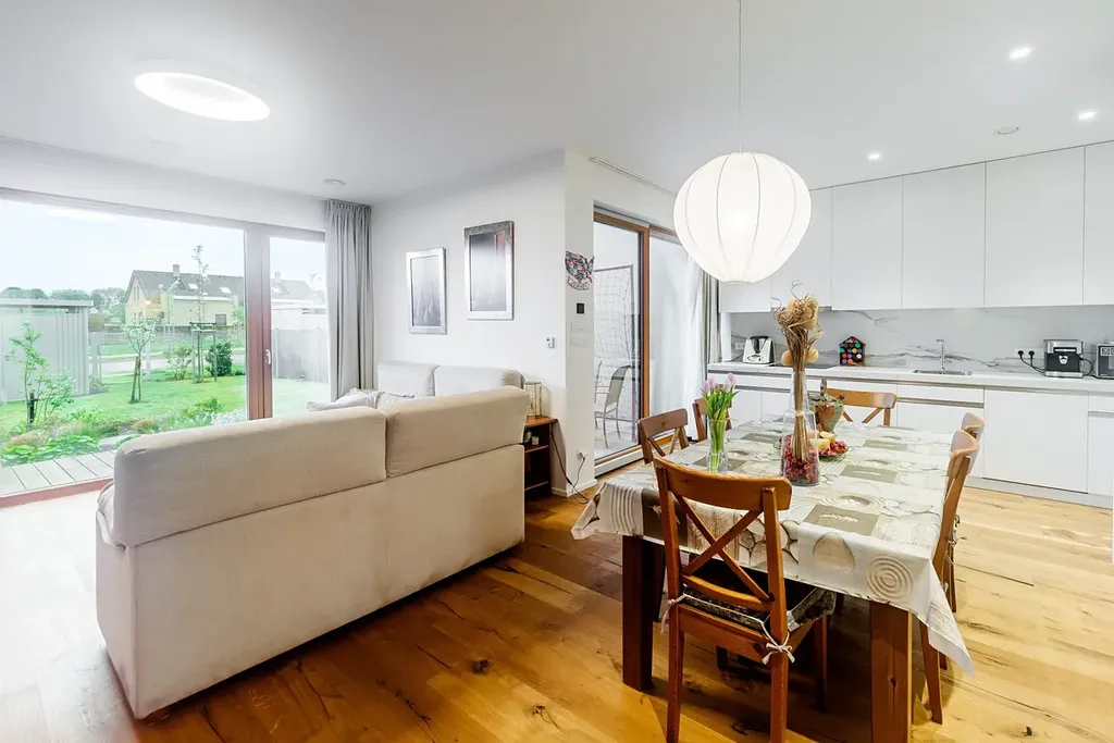 Vysoký standard vybavení: dřevěné podlahy, dřevěná okna s trojskly.