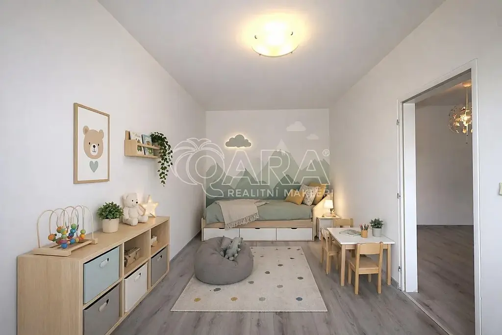 Velkým benefitem je slunná, jižně orientovaná zahrada se vstupem přímo z obývacího pokoje. Prostor, který přirozeně rozšiřuje bydlení ať už pro odpočinek, děti nebo vlastní realizaci.