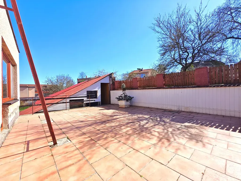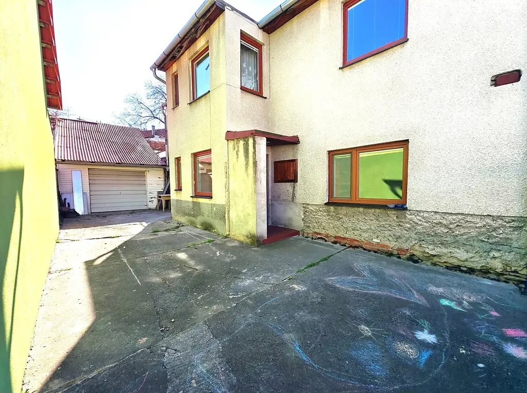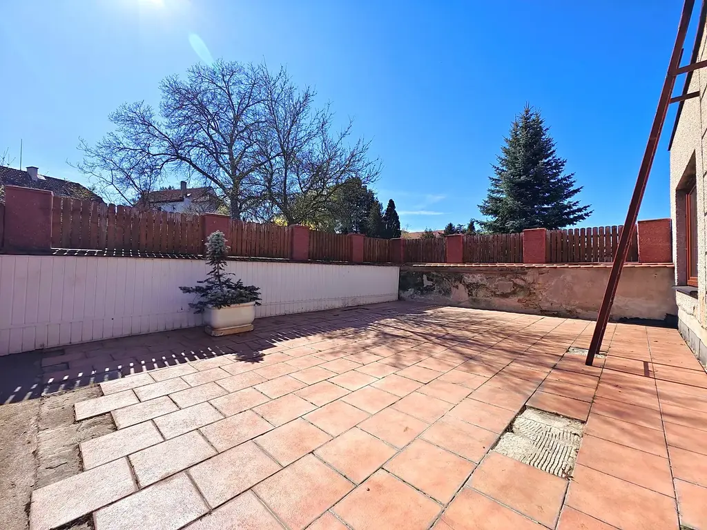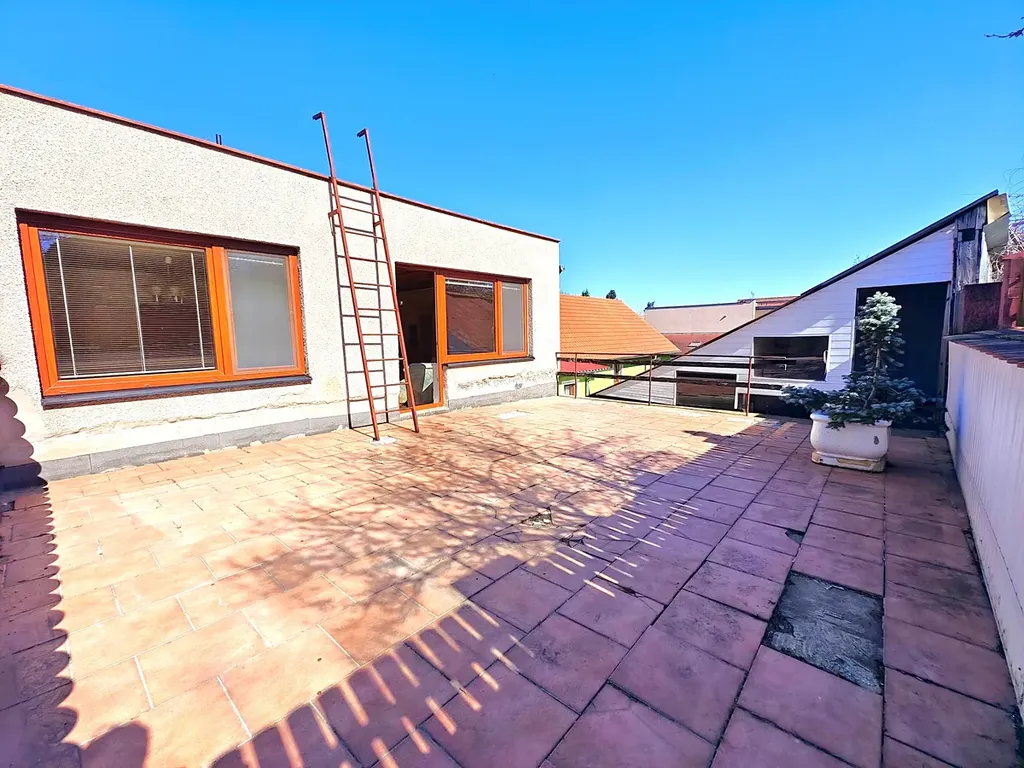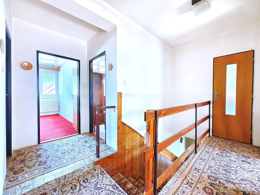 Rodinný dům o dvou nadzemních podlažích (+ sklep) z roku 1980 nabízí dostatek prostoru pro velkou rodinu nebo pro fungování dvou samostatných bytových jednotek. K hornímu bytu (4+1) náleží velká terasa nad garáží s orientací na jiho-západ, která nahrazuje posezení na zahradě a v létě zafunguje jako druhý obývací pokoj. Stejné zázemí poskytne dolnímu bytu (3+kk) dvorek, který se ještě zvětší po případném zbourání dřevěné stodoly.