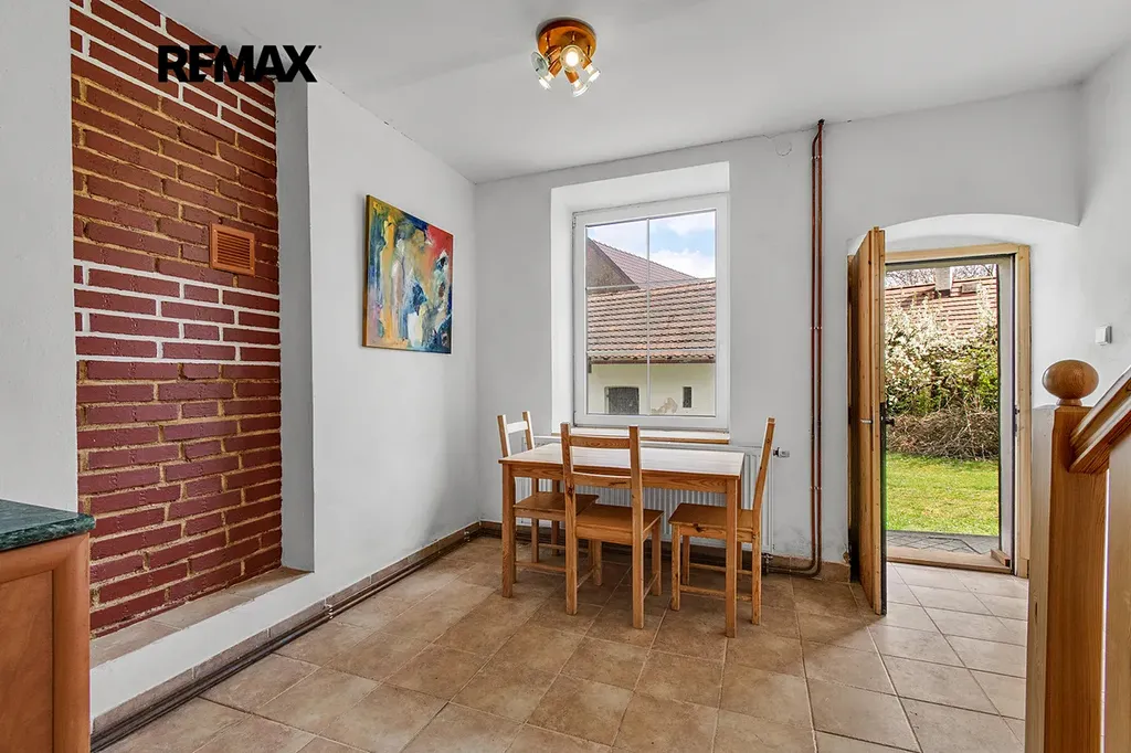 Součástí nemovitosti je uzavřený dvůr s pohodlným vjezdem z komunikace, zděná stodola, zděná garáž, hospodářská budova s půdními prostory a dřevěná stodola, které poskytují široké možnosti využití, například pro dílnu, skladování nebo podnikání.