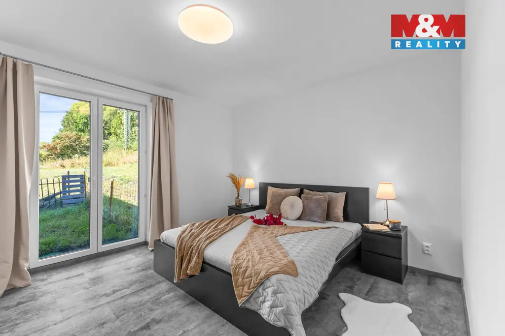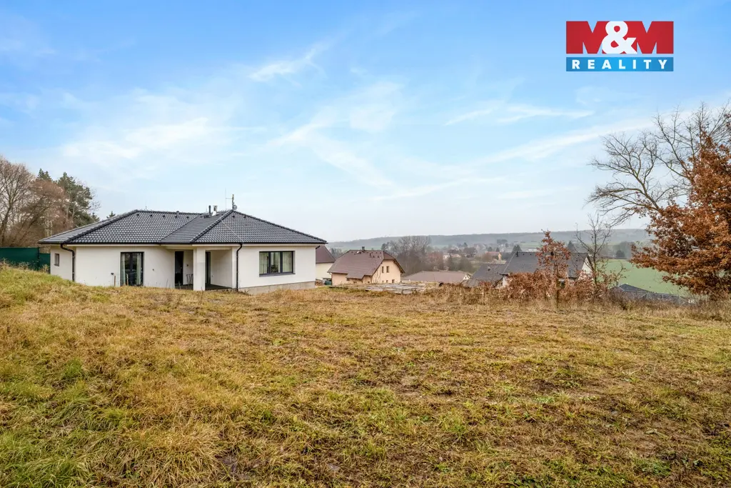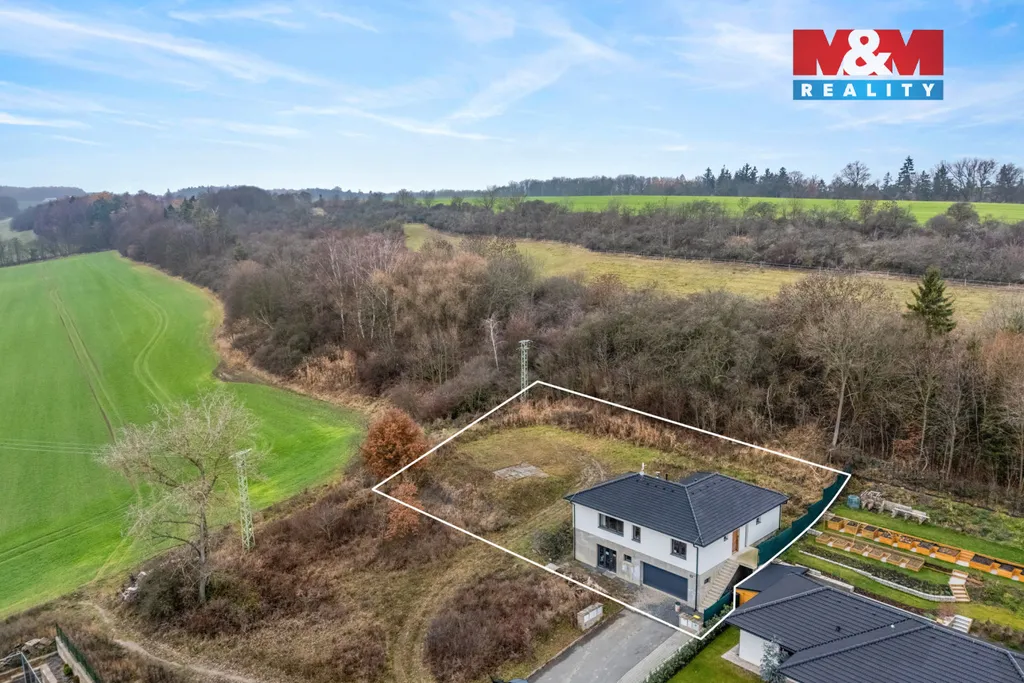 Kolem domu se rozprostírá prostorná zahrada s nádherným výhledem do okolí, která čeká na vybudování dle nového majitele. Dům je napojen na obecní vodovod i kanalizaci, vytápění zajišťuje podlahové topení a krbová vložka. Ohřev teplé vody přes plynový kotel. Nechybí příprava na fotovoltaiku ani venkovní žaluzie.