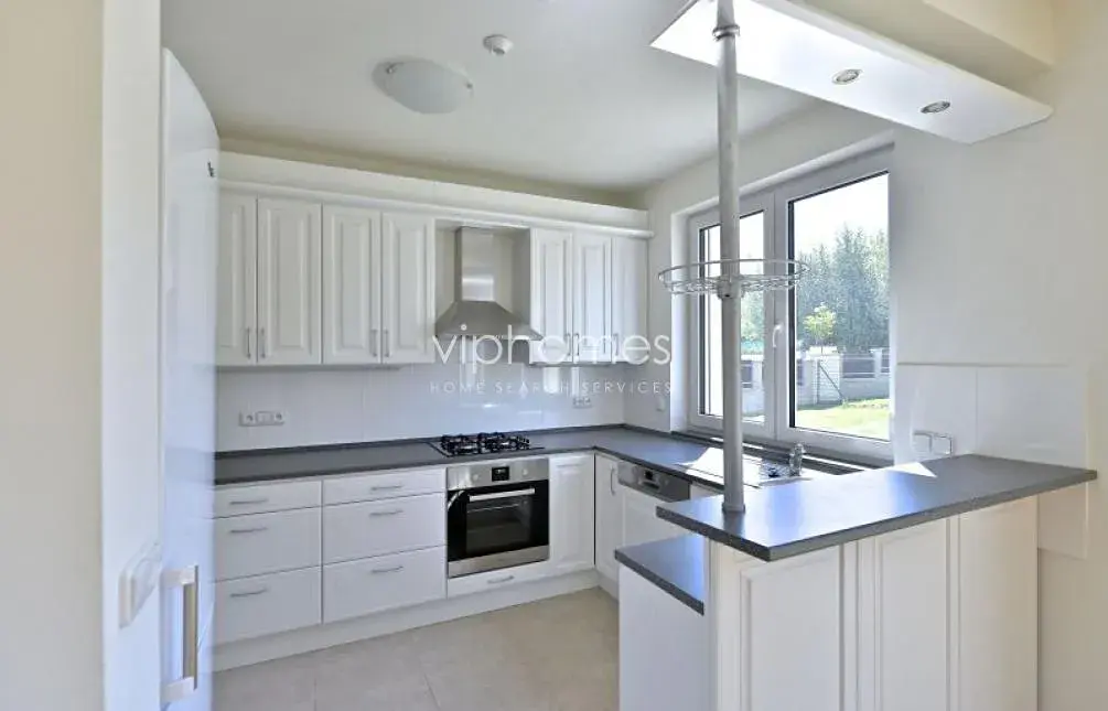 Průhonice leží na jižním okraji Prahy, cca 15 km od centra po dálnici D1. Dominantu obce tvoří zámek s půvabným rozlehlým zámeckým parkem, který patří do seznamu chráněných památek UNESCO . Dále zde naleznete nádhernou botanickou zahradu. Okolí obce je vhodné pro provozování různých sportů. Množství hotelů a restaurací, včetně malého pivovaru, dodávají obci hlavně v letních měsících své kouzlo. Asi ve vzdálenosti 1000 m od obce najdete velké nákupní centrum a rozlehlý „vodní park" , který ocení hlavně děti. V obci je také škola a školka pro děti, pro anglicky mluvící děti je mezinárodní anglická škola a školka na Praze 4, vzdálená 20 minut autem. Zálohy na služby a spotřebu energií včetně údržby zahrady cca 10 000 Kč / měsíc. Provize RK jedno měsíční nájemné + DPH. Průkaz PENB není k dispozici, proto je uvedena třída G.