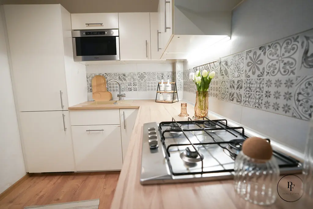 Byt se nachází v přízemí cihlového domu, prodává se kompletně vybavený a náleží k němu také sklepní kóje.