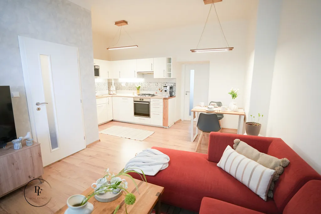 Prakticky řešený byt 2+kk o podlahové ploše 57 m² v ulici Špitálská, Praha 9, Vysočany. Velkým benefitem je prostorný zelený vnitroblok se zahradou a lavičkami, který nabízí příjemné místo k odpočinku přímo u domu.