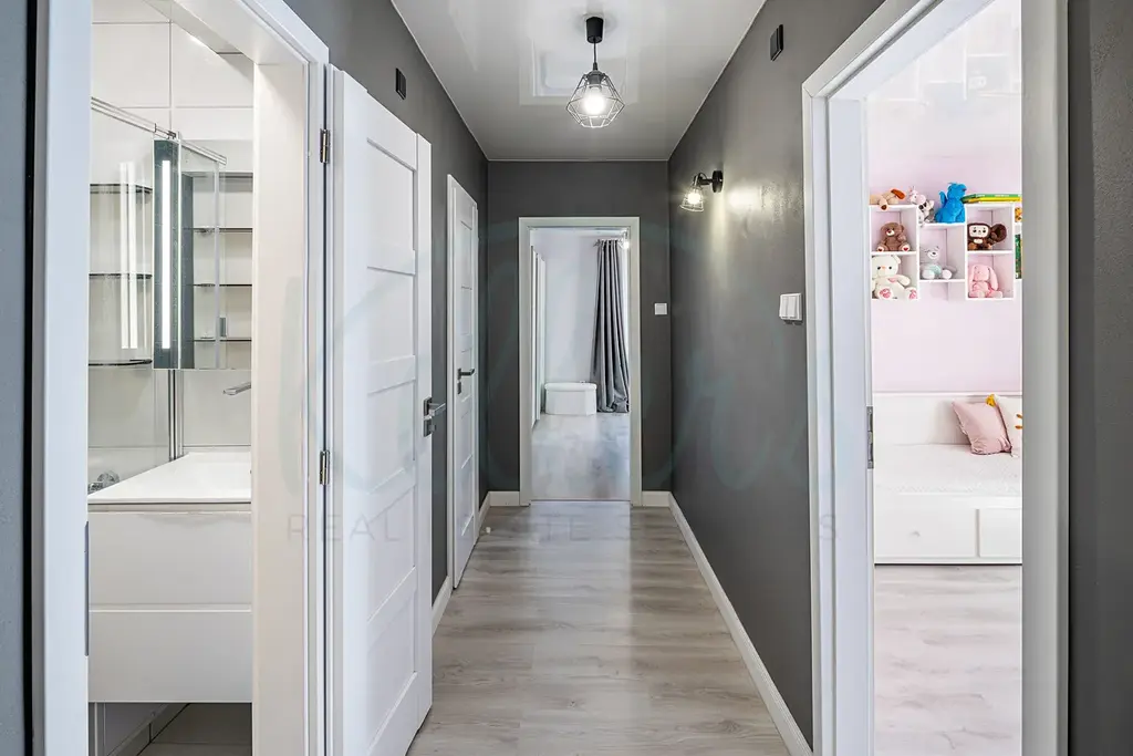 Byt prošel rekonstrukcí a nabízí praktické dispoziční řešení – všechny pokoje jsou neprůchozí. Koupelna je samostatná, oddělená od toalety. Hlavní ložnice je chytře rozdělena posuvnými dveřmi na spací a šatní část, což zajišťuje dostatek soukromí a komfortu. Druhý pokoj je aktuálně využíván jako dětský, snadno jej však lze upravit na obývací pokoj dle potřeb nového majitele.