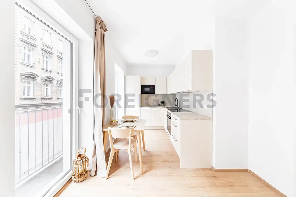 Pronájem moderního bytu 1+kk, 28 m² – novostavba, blízko centra města.