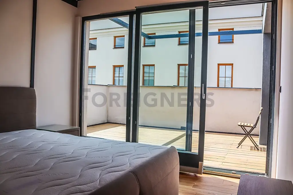 Nabízíme dvou patrový byt (2025) s velkou terasou a dvěma ložnicemi. Moderní a komfortní bydlení s důrazem na detail, vedle Impact Hubu, pár minut od centra města. Byt je plně vybaven (talíře, příbory atd.). Parkovací místo je možné za poplatek.