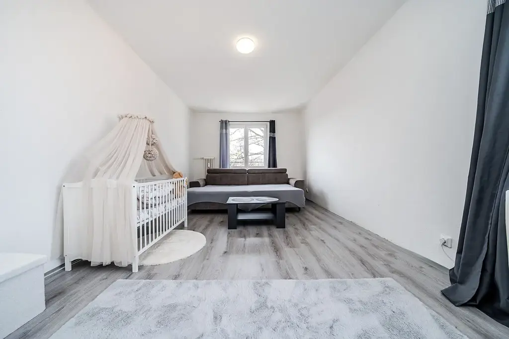 Byt je v dobrém stavu a umožňuje okamžité bydlení nebo úpravu dle vlastních představ. Dispozice zároveň nabízí možnost změny na menší 3+1, což ocení například rodina nebo zájemci, kteří potřebují samostatnou pracovnu.