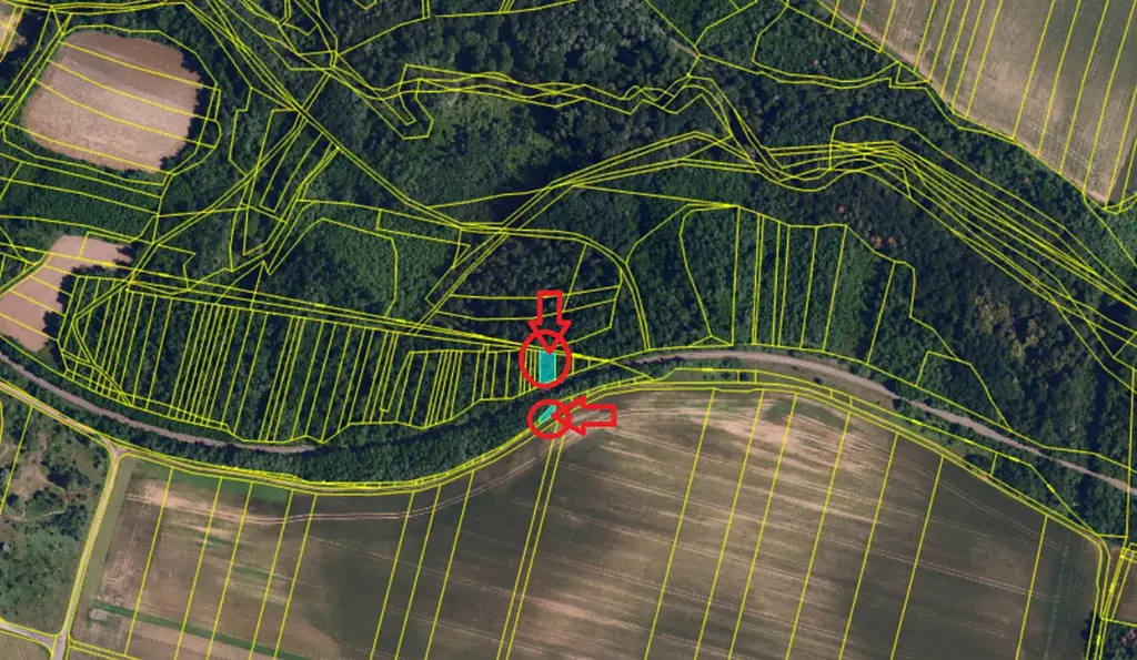 - p.č. 2615 vedená jako lesní pozemek o celkové výměře 221 m2 (stáří lesa 81 let - zastoupení dřevin akát),