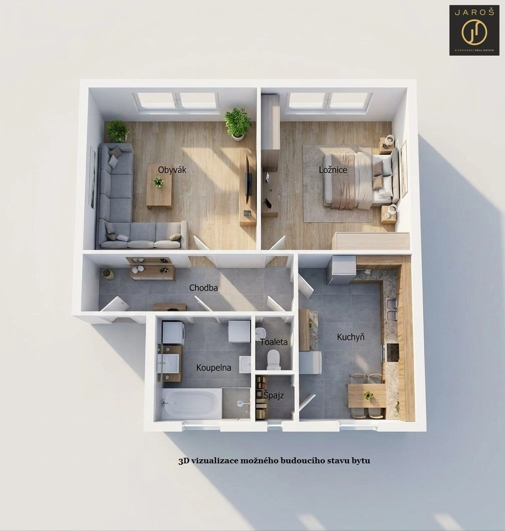 Nabízíme k prodeji byt o dispozici 2+1 a podlahové ploše 75 m², situovaný ve 3. nadzemním podlaží, cihlového domu s celkem 7 bytovými jednotkami. Byt je v původním stavu a je určen k rekonstrukci dle vlastních představ, což nabízí ideální příležitost vytvořit si bydlení přesně podle vlastního stylu. Pro lepší představu o možnostech úprav byly zpracovány vizualizace dvou obytných místností a koupelny. Současně byl vytvořen 3D půdorys, který znázorňuje možné úpravy interiéru a pomáhá lépe vnímat potenciál nemovitosti. Vizualizace jsou pouze ilustrativní. Dispozice bytu je prakticky řešena – dvě prostorné obytné místnosti, samostatná kuchyně se vstupem do skladovací místnosti, koupelna s oknem a vanou a oddělené WC. V bytě jsou plastová okna (mimo koupelnu a skladovací místnost). Zachovány jsou původní dřevěné dveře a obložky s možností renovace. Podlahy tvoří kombinace plovoucí podlahy, PVC a dlažby. Kuchyň je vybavena kuchyňskou linkou s plynovým sporákem a elektrickou troubou. Vytápění je řešeno ústředním plynovým kotlem, ohřev vody zajišťuje elektrický bojler umístěný v koupelně. Elektroinstalace je částečně v mědi a částečně v hliníku. Bytový dům prošel před cca 10 lety rekonstrukcí fasády z uliční strany. Do budoucna je plánována úprava fasády do vnitrobloku a zvelebení společného dvora. Lokalita nabízí výbornou dostupnost centra města Děčína – Podmokly, včetně veškeré občanské vybavenosti v docházkové vzdálenosti. Zároveň se jedná o běžnou městskou zástavbu, která je vhodná pro každodenní život a nabízí dobrou dostupnost služeb i dopravy. Měsíční náklady včetně fondu oprav činí 2.719 Kč + vlastní spotřeba plynu a elektřiny. Byt je ideální volbou pro zájemce, kteří hledají dostupné bydlení s potenciálem úprav dle vlastních představ.