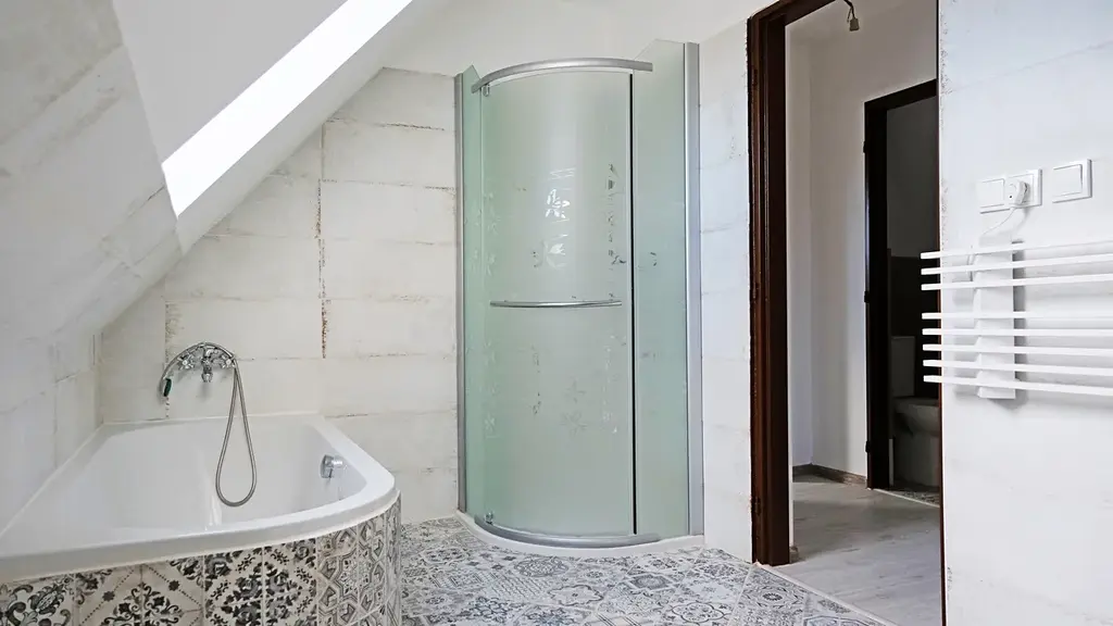 - pokoj, koupelna (umyvadlo, vana, sprchový kout), sam.WC + umyvadlo, pokoj, půdní prostor, prostorná místnost (ateliér), tech.místnost (závěsný el.kotel, bojler), vstupní chodba, 3.vchod (horní vstup z ulice)