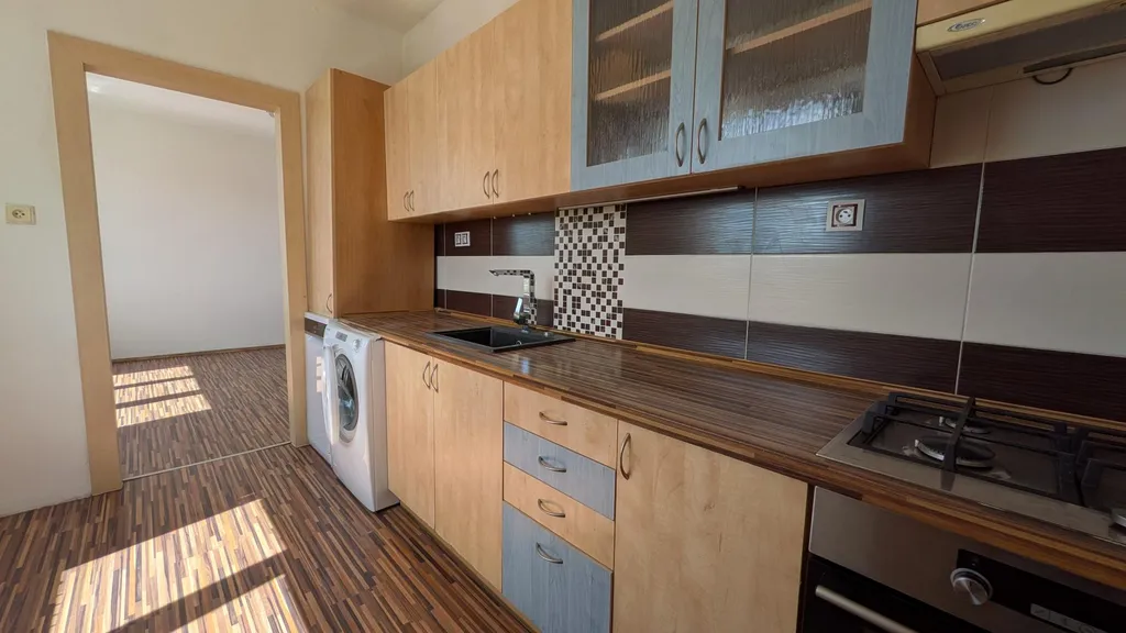 V kuchyni je vkusná kuchyňská linka s elektrickými kamny a plynovým sporákem s digestoří, k dispozici je i myčka a pračka. Ložnice vybavena skříní, která nabízí dostatek úložných prostor. Součástí koupelny je prostorná vana, umyvadlová skříňka se zrcadlem a WC. Místnosti jsou světlé a prostorné. K bytu náleží sklep.