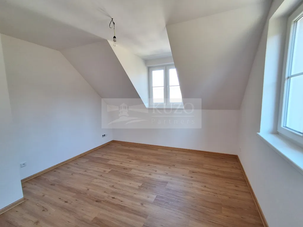 • Klidová zóna: Tři ložnice v podkroví s dechberoucími výhledy do krajiny a vikýřovými okny. Na tomto patře naleznete zároveň šatnu, druhou koupelnu s vanou, umyvadlem, WC a oknem.
