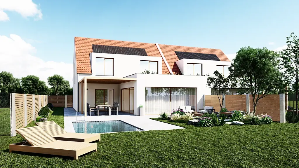 Domy jsou navrženy v energetické třídě A – to znamená nízké provozní náklady a vysoký komfort bydlení. Kvalitní stavební materiály, promyšlené dispozice a důraz na detail zaručují nadčasové a komfortní rodinné zázemí.