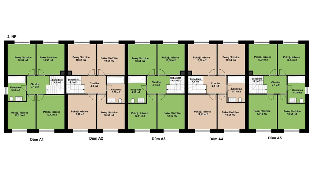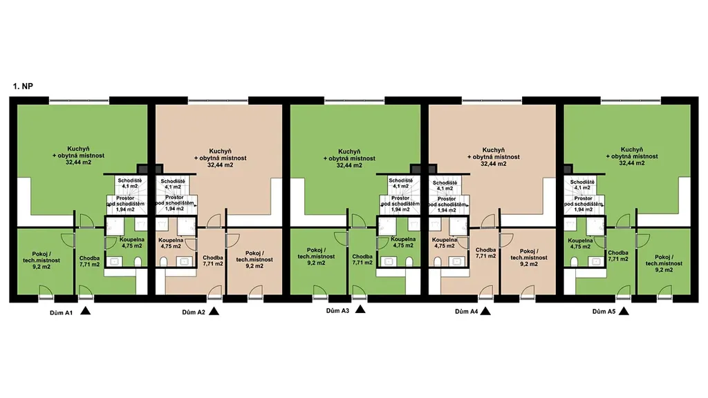 Domy jsou označené jako A1 – A5