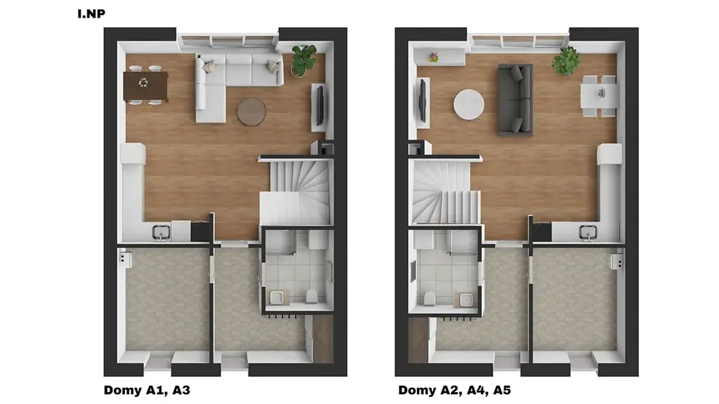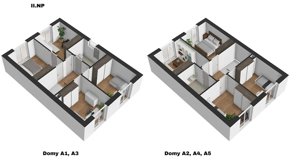Domy mají dispozici 5+kk, zastavěnou plochu 71 m2, užitnou plochu 114,5 m2 a pozemek až 311 m2.